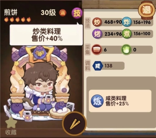 技能:炒类料理售价+40%