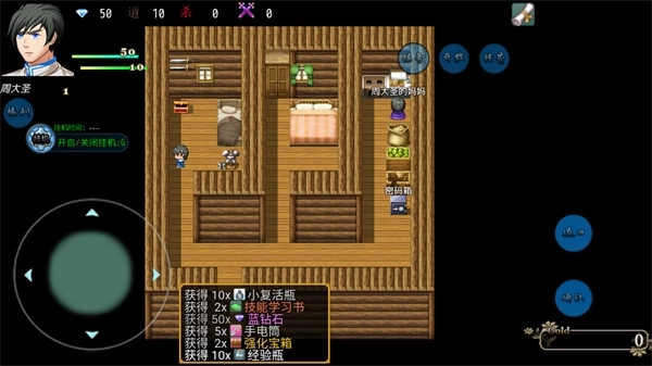 4、游戏内玩家可以自由的挂机,打开任务,开启挂机,关闭挂机,开关遇敌等等,游戏内玩家遇到的所有怪物都会自动击败获取大量道具;