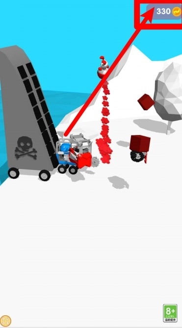 2.画面右上角为当前金币数,击败敌人或完成关卡即可获得,用于解锁更多零件。