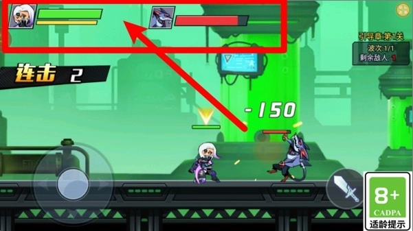 1.战斗血条显示:画面上方清楚显示玩家与敌人的血量变化,方便掌握当前战斗状态与击败敌人的进度情况。