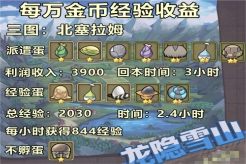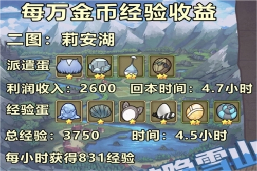 想要长期高强度升级的话,1图是综合来看升级最理想的地图。这个图适合预算不多但急于提升等级的玩家,投入几万金币就能很快回本,还能快速孵化经验蛋。