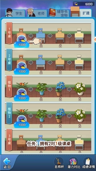 3、这里点击任务,需要购买两个课桌;