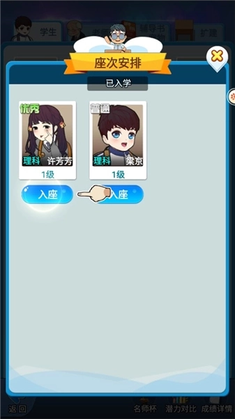 主要分为超常发挥率和超常发挥值,如果想要在考试和竞赛中取得更好成绩,它们可是必不可少的,可根据提示消耗汗水进行选择升级。