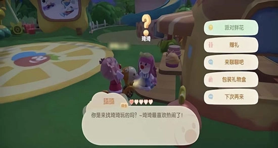 4、在完成派对鲜花任务之后的第二天,小伙伴们再去找琦琦,获得草莓蛋糕,将草莓蛋糕送给梅森,我们就可以获得梅森售卖机了。