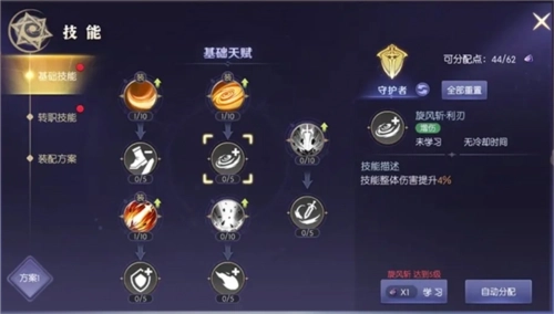 首先需要提升的就是职业技能,无论选择哪一职业技能的加点都是重中之重,通过提升等级可以获得点数。提升等级之后的技能效果明显提高,首先需要加点的是5个主动技能,尽量选择自己优先使用的4个进行强化,然后是它们对应的被动效果。