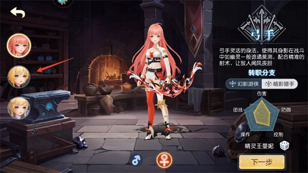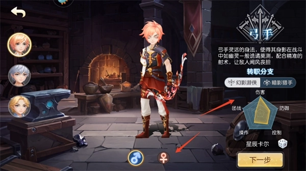 进入游戏首先看到会是弓手,弓手可以转职为幻影游侠和暗影猎手。幻影游侠更注重个人作战能力,伤害拉满且有一定的控制与位移,防御还凑活,团战中更偏单打独斗。