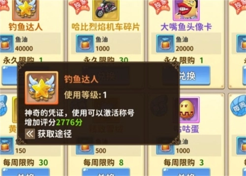 8、除了完成各种任务以外,若初心者们身上有鱼饵的话,也可以选择去钓鱼。钓鱼可以获得随机的材料和鱼油。鱼油可以在鱼小店兑换各类对冒险有帮助的道具,还包括专属摩托坐骑和专属称号哦