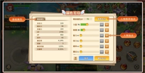 10、37级人物开启自由属性加点,可以根据自己的游戏习惯进行加点,也可以直接点击推荐加点进行一键加点,选择最适合自己的加点方式吧