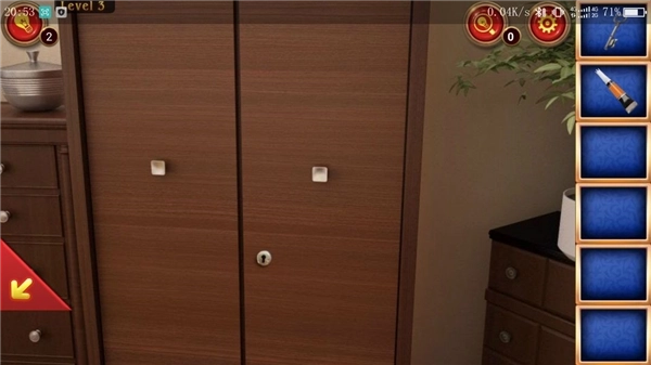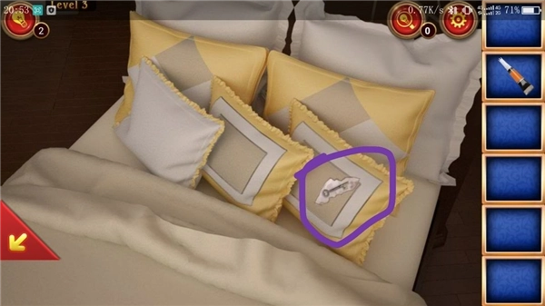 点击②处,点击剪刀再点击枕头,得到一把钥匙