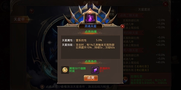 灵魂天星属性为:雷系抗性5.0%