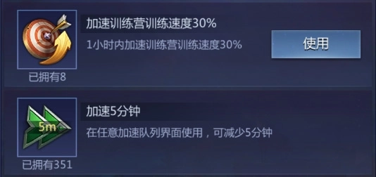加速卡有两种,分别是固定时间加速和百分比加速,前期所有固定时间加速都可立刻使用,而百分比加速则建议留给后续升级时间较长的建筑;