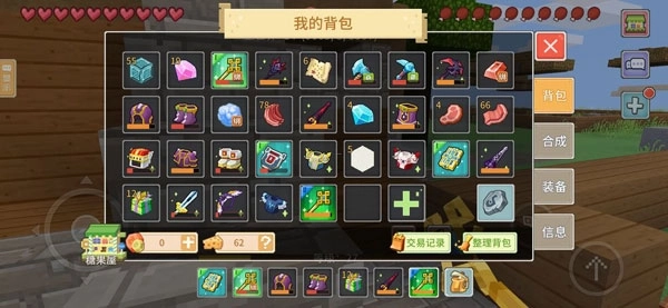 点开有背包、合成、装备三个功能项,在界面的右下角