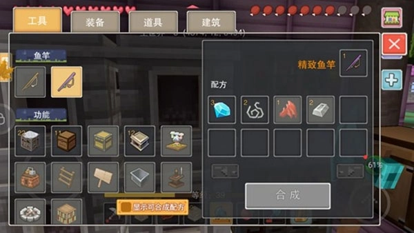 合成配方:精致鱼竿x1=钻石x3+铁锭x2+龙鹰翼x1+线x2