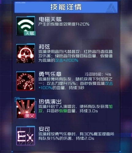 除了和弦这个技能,勇气乐章和热情演出还能提高队友的攻击力和血量,且热情演出的血量恢复不是按量而是按时间的,每次持续3S,就琉璃现在的恢复能力来说,就等于为队友提供了3S的无敌时间。