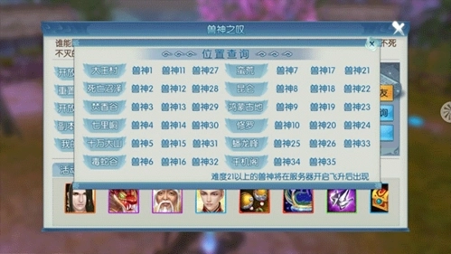 最高难度34-35在千机阁刷新,刷20个点,前面各地图新兽神刷新点都是10个,优化了游戏体验,以后抢难度35会比现在抢26简单很多。