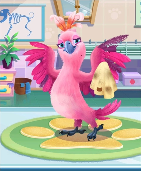 3、接下来要帮助翅膀受伤的鹦鹉小姐,首先用毛巾为鹦鹉小姐擦拭掉身上的污渍,接着用针线帮她把断裂的羽毛修补好,最后用梳子为她梳理羽毛即可。