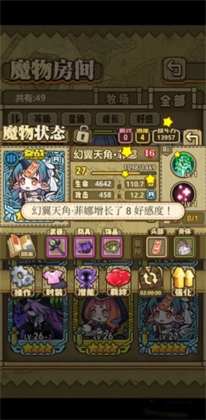 玩家每天可以给魔物送许多礼物,有的礼物增加好感度数值高,有的礼物甚至还会降低魔物的好感度。玩家需要对羁绊的礼物进行选择,这样才能更快刷出高羁绊值。