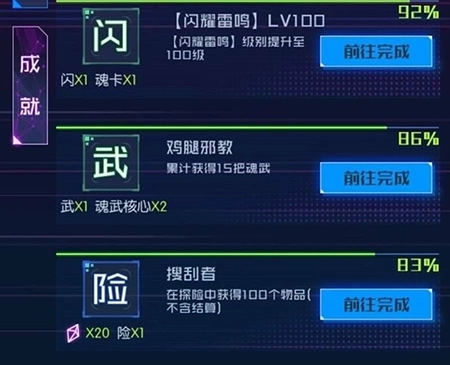 成就任务大多数和学员的等级、学员的收集之类的数据相关,当你在游戏中把学员提升到一定等级,把魂武强化到一定的阶段,都可以完成成就任务。但成就任务有的时候只会给勋章和魂卡,并没有魂晶。