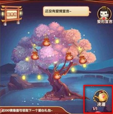 1、这棵树位于情侣空间,只有在关系达到了红颜知己,即2000亲密度的时候才能够开启。