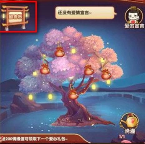 5、点击左上方【留言板】可以互诉衷肠。在右上角也可以发布爱情宣言。