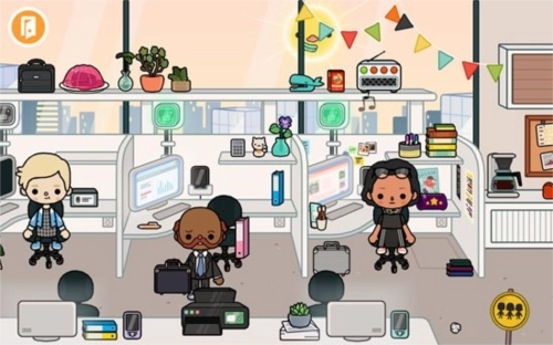 2、我们随便点击一个大楼即可进入其中,例如我们选择商业用楼,进来后发现里面是一间办公室,可以看到很多办公用品,还有很多工作的人员。