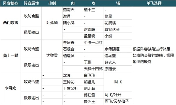 选择单飞弟子时,要考虑其与阵容中其他弟子的契合度,并且能填补阵容的短板,具体选哪个可以依据自身对阵容搭配的理解来决定。例如,若阵容里的两对合璧组合都是输出型,那单飞弟子就可以考虑选肉盾型的;要是两对合璧都是群攻类型,单飞弟子则可以考虑选单攻类型的,以此类推。