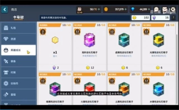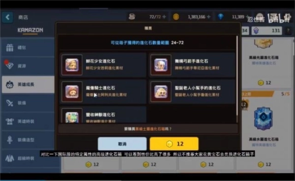 在英雄成长里花费黄色宝石兑换的进化箱子也是非常亏的。