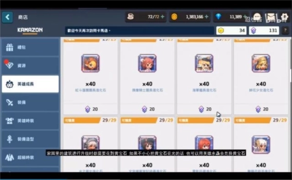 如果不小心把黄宝石花光的话,也可以用英雄水晶去兑换黄宝石。