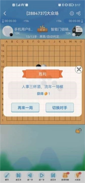 4、始终结交志同道合的棋友,借助多样的聊天途径,切磋棋艺,分享围棋之路上的经历与感悟。