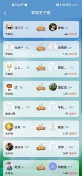 每月五子棋赛事,战胜对手获得荣耀记录实力认证