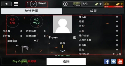 5、点击主界面上方Player即可看到自己的战绩;