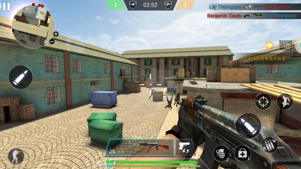 3、角色移动由虚拟摇杆操控,射击和战术动作则通过右侧按键来完成。