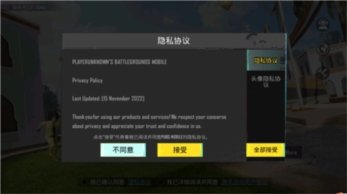 1、进入游戏,首先必须点击全部接受游戏的相关条例,要不然无法打开游戏。