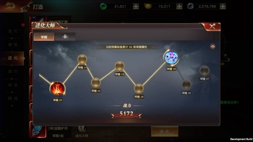 在进化系统里,装备进化需要消耗进化宝石,每次进化都存在成功率,若想提升成功率,就需要消耗若干同职业装备。