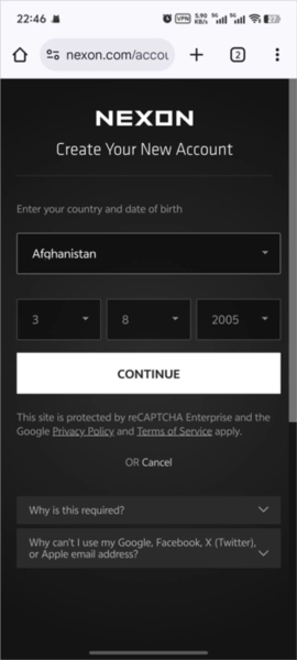 3、登录后进行注册操作,绑定NEXON账号,接着选择所在地区以及出生年月日;