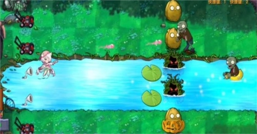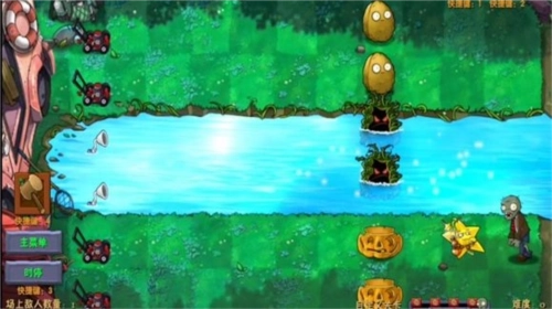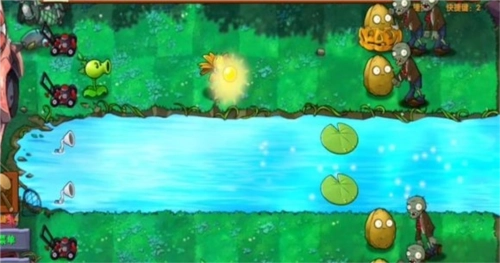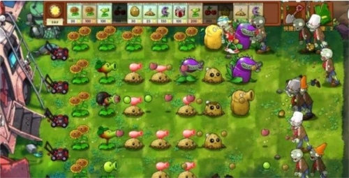 2、使用高于向日葵高度的坚果保护一路,其他路可以都种上“豌豆土豆雷”和“豌豆坚果墙”。