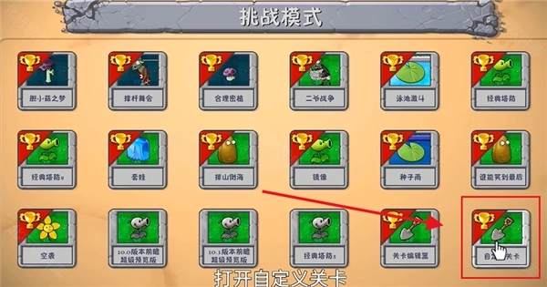 6、返回主界面重新进入挑战模式-迷你游戏,在最下方点自定义关卡,就能玩到刚刚编辑好的关卡地图了