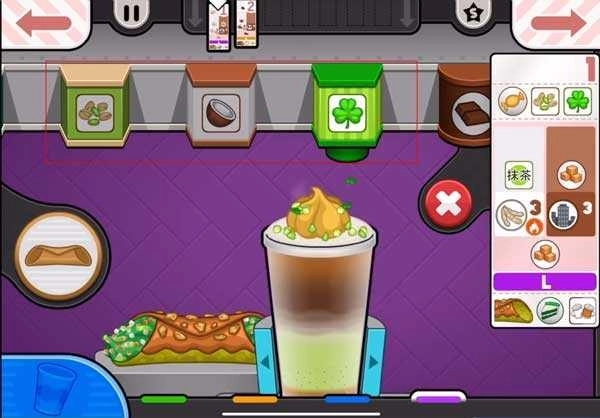 2、制作时,咖啡、牛奶和各类配料都得精准地对准中心位置添加!要严格依照订单顺序来摆放物料,要是底部还有其他小料的话,就先放这些小料。同时得把控好左侧的进度条,让它始终维持在绿色区间内,这样才能防止因失误被扣分。