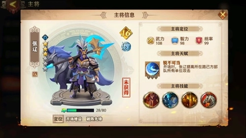 (4)按照上述搭配后还剩两个可选位置,这里小编强烈推荐大家选张辽。虽然张辽的羁绊无法和在场角色组合,但他的技能与这个队伍极为契合,综合能力最为突出。特别是他的一技能“昂扬”,有了这个技能后,马超突破前排的速度会更快,而且突破前排后还能带来更多加成——基本上只要马超能冲到后排,敌人就差不多没了。