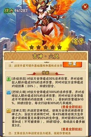 ①主将记得要给高星宠物加护佑,要是没多少资源的话尽量先升到3星,有条件的玩家可以直接弄个满星(5星)的火神·祝融,那可太爽了,不少老区玩家也差不多人手一个5星火神呢。