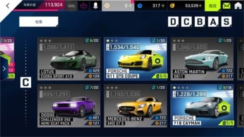 这里我就不标注哪个是国服,哪个是国际服了,大家应该知道。国服的车库分级机制和国际服不同,所以车辆分级和国际服也不也一样。比如在国际服中的d车道奇392在国服变成了c级车,国际服b车911,在国服变成了c车等等,具体我就不多说了,大家看图吧。