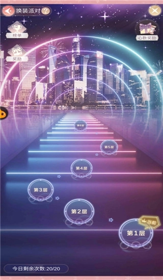 派对为时装比拼类型,根据每个关卡的要求穿戴相应类型额服饰即可增加分数,分数超过通关条件时即可通过,超出分数越多通关星级越高,最多3星。
