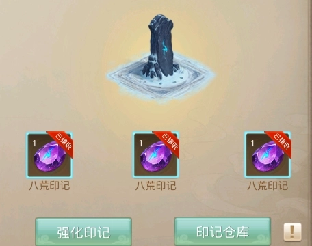 八荒印记:八荒世界中蕴含强大力量的印记,将其镶嵌在八荒碑上面,可为所有弟子、代理掌门提供加成属性和增益效果。最多镶嵌3枚。