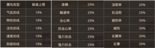 2.八荒碑蕴含的属性类型及其最大值如下图所示: