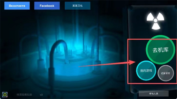 1、进入游戏主界面后,能看到以蓝光核反应堆为背景的画面,点击右侧的绿色按钮即可进入车库。