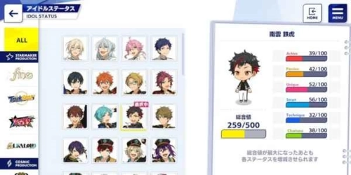 属性总共有六条,每条的上限是100点,不过每个小偶像最多能拥有500点属性值。当属性值达到500这个最大值时,我们可以选定两条属性值,让其中一条下降、另一条上升。之后每次打工要是随机抽到该偶像,就会把下降属性值中的一点转移到上升的属性值上。