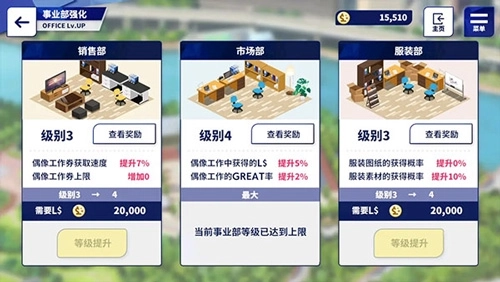 点开强化事业部,这里能帮助你更轻松完成偶像工作。
