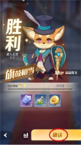 5、胜利后可以获得各种战利品,还会给队伍里的角色评选一个MVP。点击确认就可以结束战斗了。