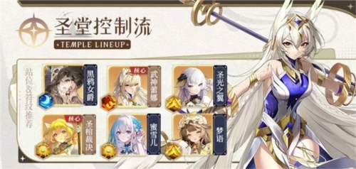 圣堂控制流在于结合了强力的核心输出英雄与多样化的辅助角色,基本实现高输出、控制以及生存能力的平衡,攻守兼备、群杀群秒:武神蕾娜提供稳定输出,主打多重追击、反击,有极高的伤害上限和破甲收割能力;圣棺裁决是团队控制手,高星还能提供全队减伤,终结技自带控制效果。