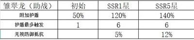 雏翠龙助战时,在SSR之前只能有套盾作用,SSR后护盾最多触发6次,相当于给每一个角色一个盾,还带无视防御抵抗,增强了角色坦度。雏翠龙在SSR后,产生了一个保全体的作用,经过星辰实测,盾不是很厚,但配合现在主流的加血复活体系很强。